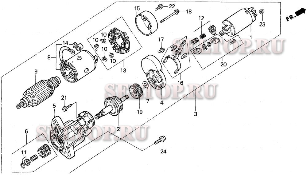 Стартер для Honda H6522 A4H/A, взрыв-схема: