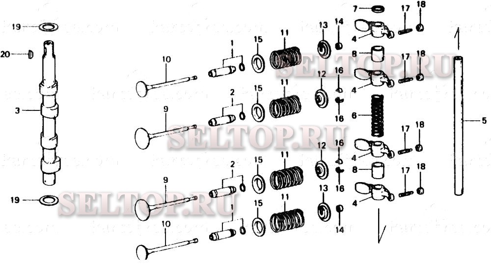 Распредвал, клапана для Honda BF100C SA, взрыв-схема: