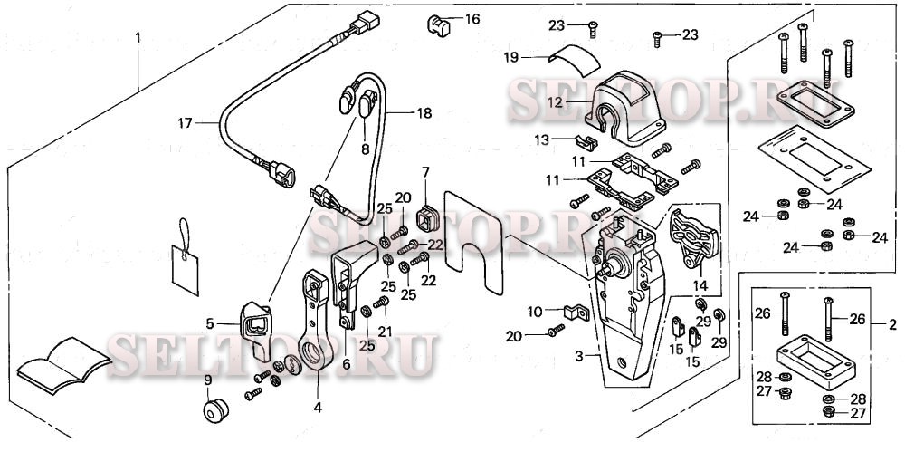 Дистанционное управление (верхняя опора однотипная) (правая) для Honda BF115A1 LCA