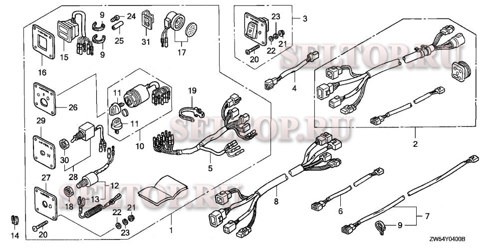 Панель управления, выключатель освещения для Honda BF115A1 LCA, взрыв-схема: