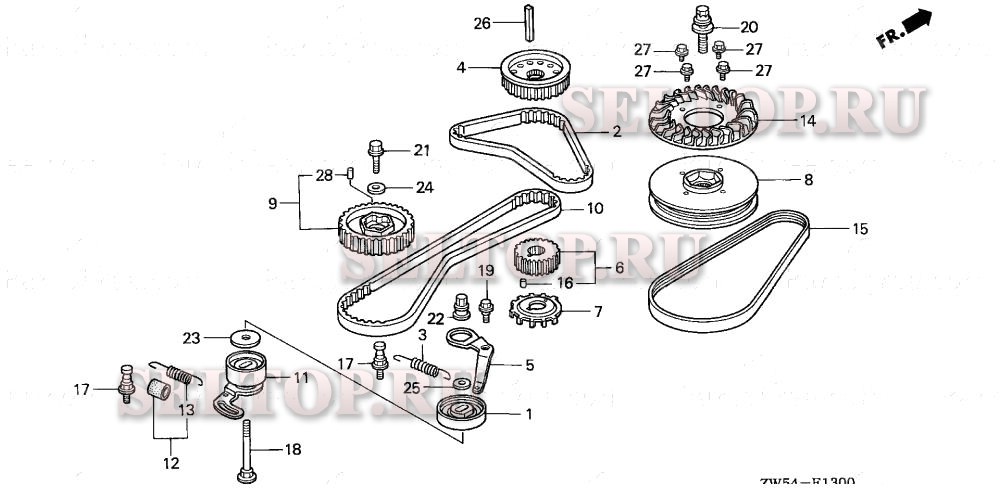 Зубчатый ремень привода для Honda BF115AX LA, взрыв-схема: