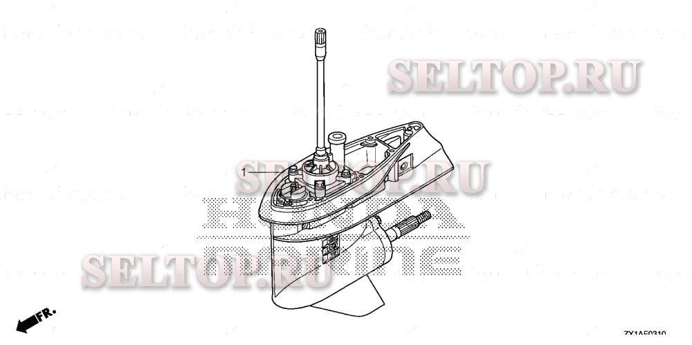 Корпус редуктора в сборе для Honda BF115DK1 XA, взрыв-схема: