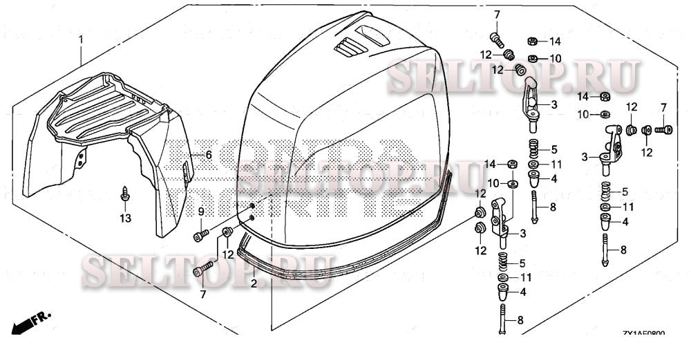 Крышка двигателя в сборе для Honda BF115DK1 XA, взрыв-схема: