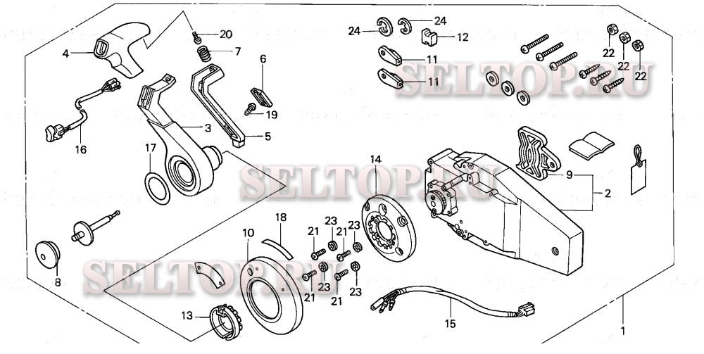 Дистанционное управление (заподлицо) (правая) для Honda BF130A1 XCA, взрыв-схема: