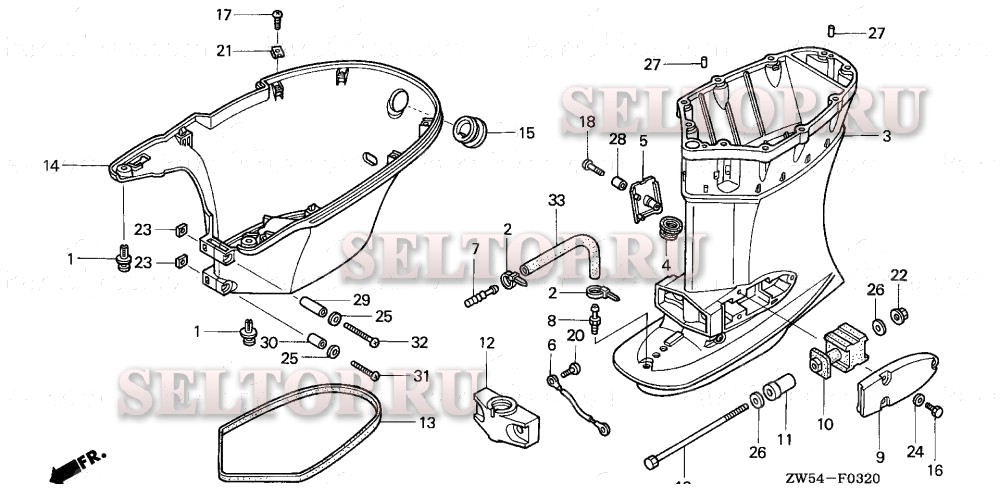 Выступающая часть для Honda BF130A1 XCA, взрыв-схема: