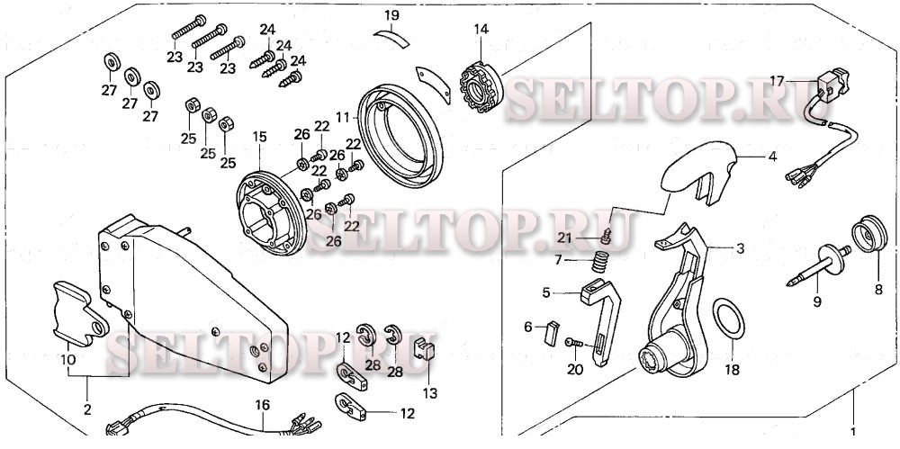 Дистанционное управление (заподлицо) (левая) для Honda BF130A3 LCA, взрыв-схема: