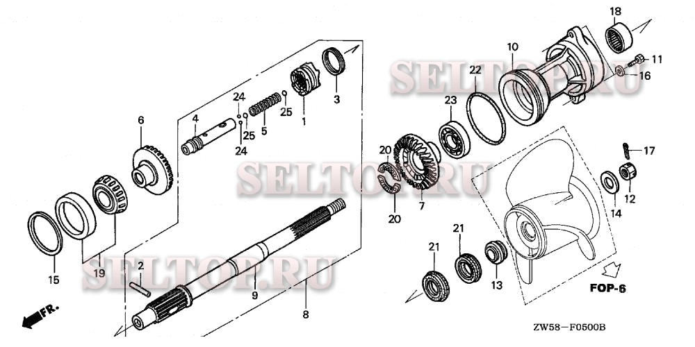 Карданный вал для Honda BF130A4 LA, взрыв-схема: