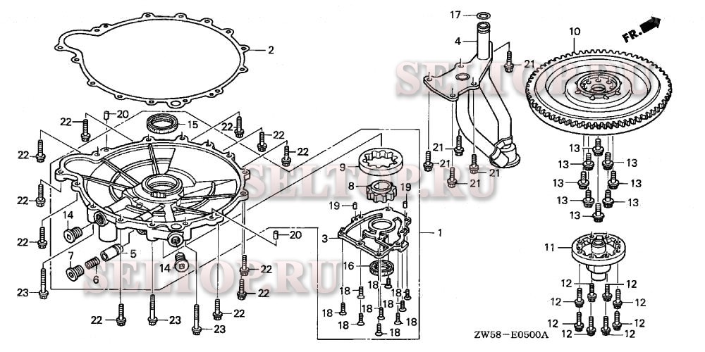 Масляный насос, выхлопная труба для Honda BF130A4 LA, взрыв-схема:
