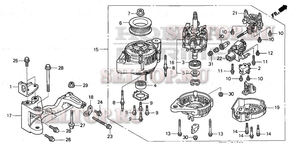 Генератор для Honda BF135A5 XA, взрыв-схема: