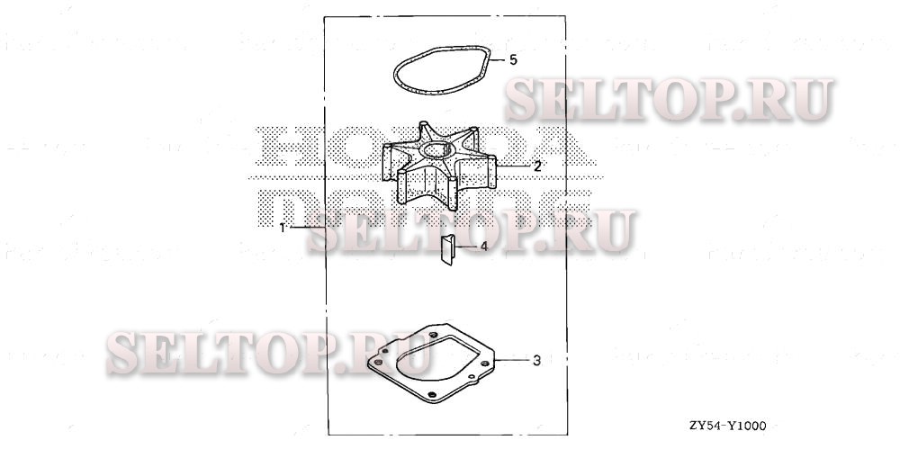 Крыльчатка насоса (1) для Honda BF135A5 XA, взрыв-схема: