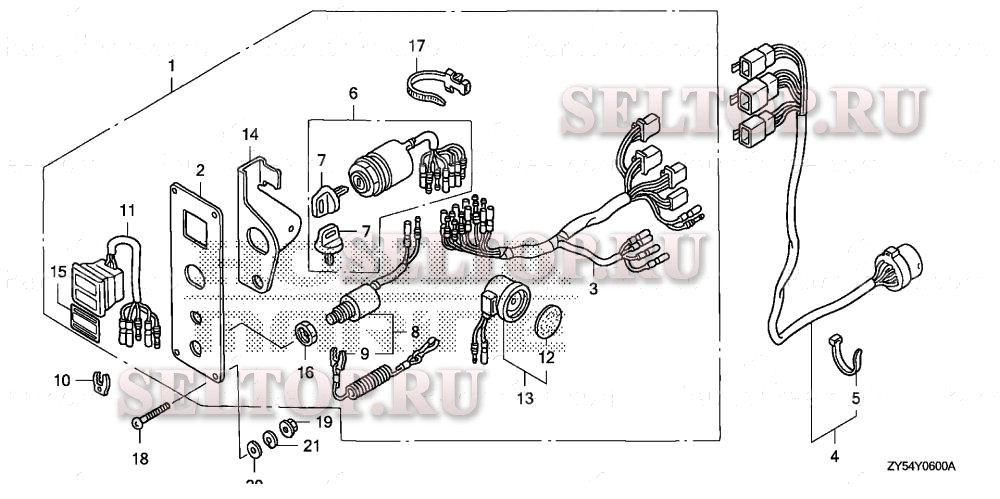Панель управления (1) для Honda BF135AK0 XA, взрыв-схема: