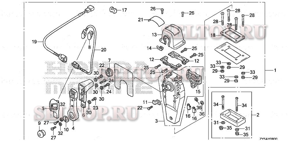 Дистанционное управление (верхняя опора однотипная) (правая) для Honda BF135AK2 LA