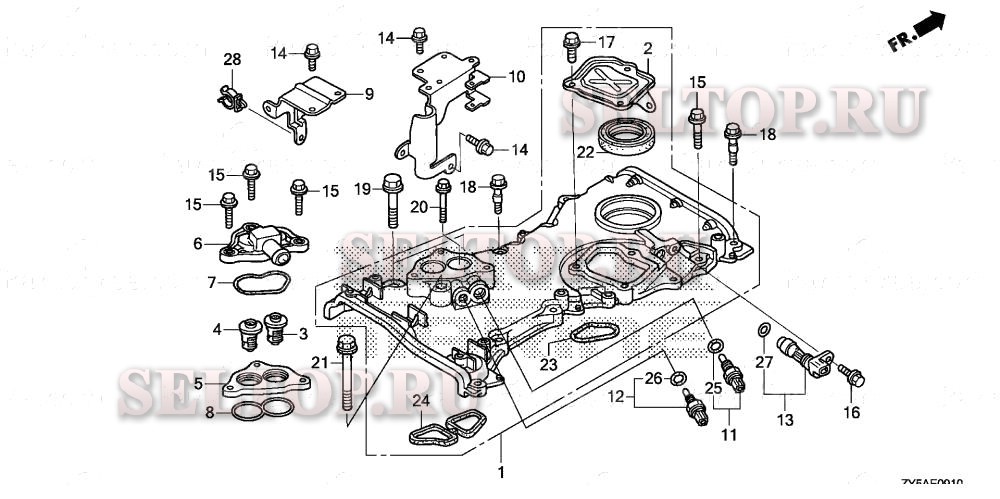 Кожух цепной передачи, термостат для Honda BF135AK2 LA, взрыв-схема: