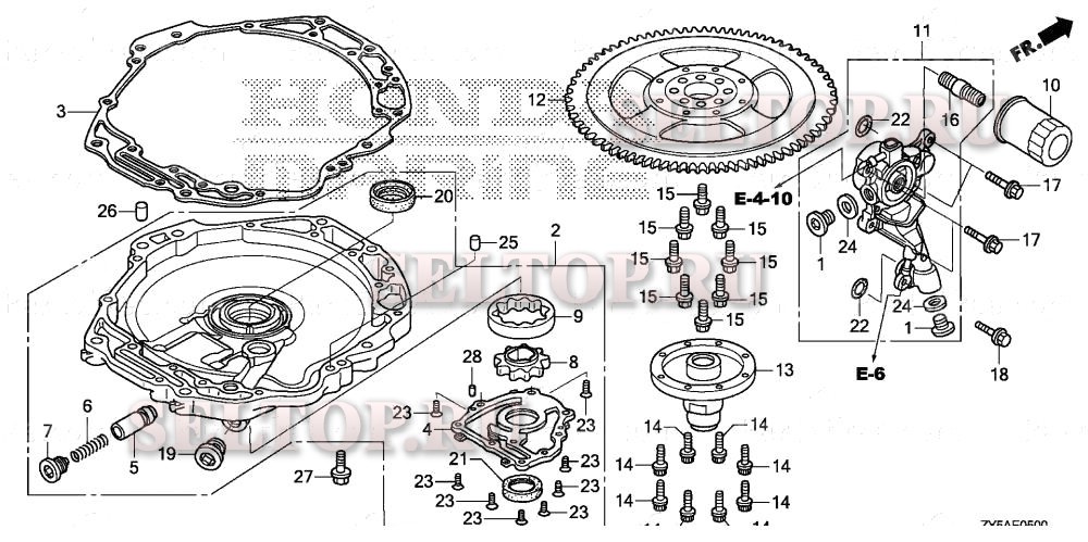 Масляный насос, маховик для Honda BF135AK2 LA, взрыв-схема: