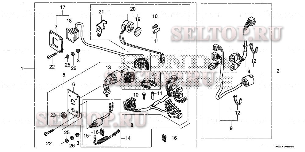 Панель управления (1) для Honda BF135AK2 LA, взрыв-схема:
