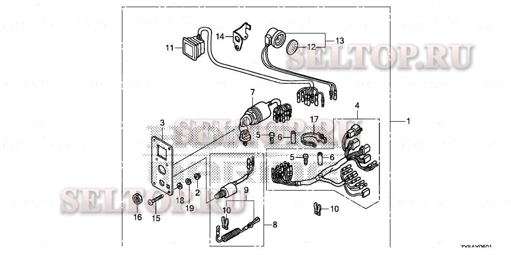Панель управления (2) для Honda BF135AK2 LA, взрыв-схема: