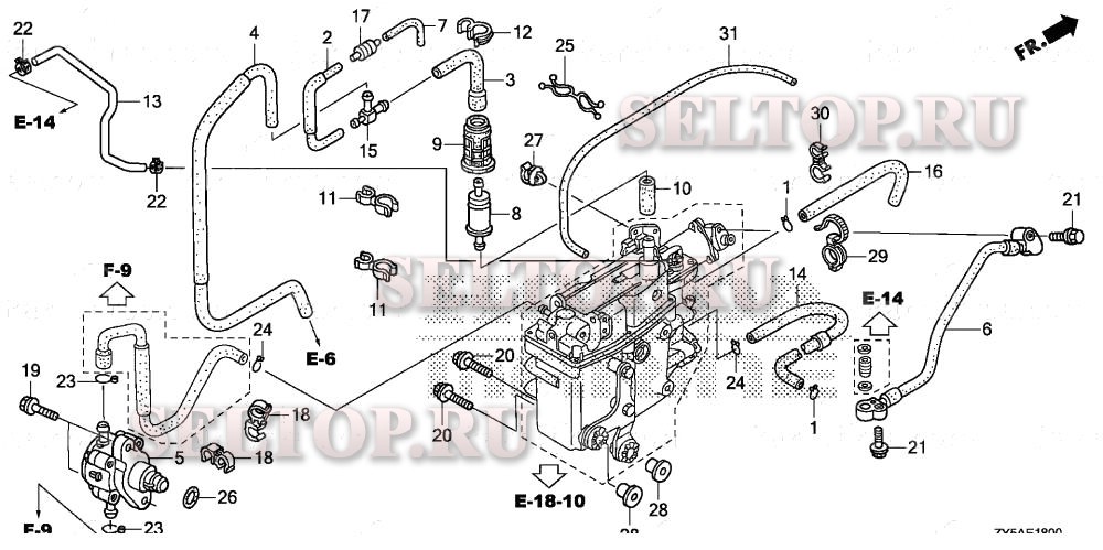 Топливный насос, шланг подачи топлива для Honda BF135AK2 LA, взрыв-схема: