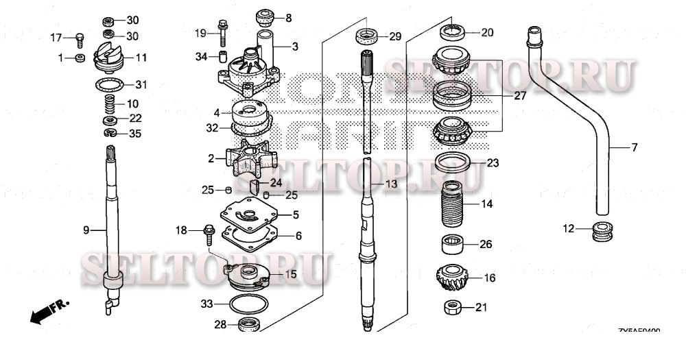 Водяной насос, вертикальный вал для Honda BF135AK2 LA, взрыв-схема: