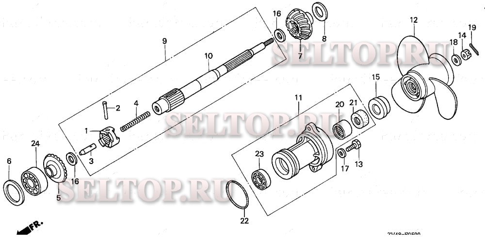 Карданный вал, гребной винт для Honda BF15A2 XAS