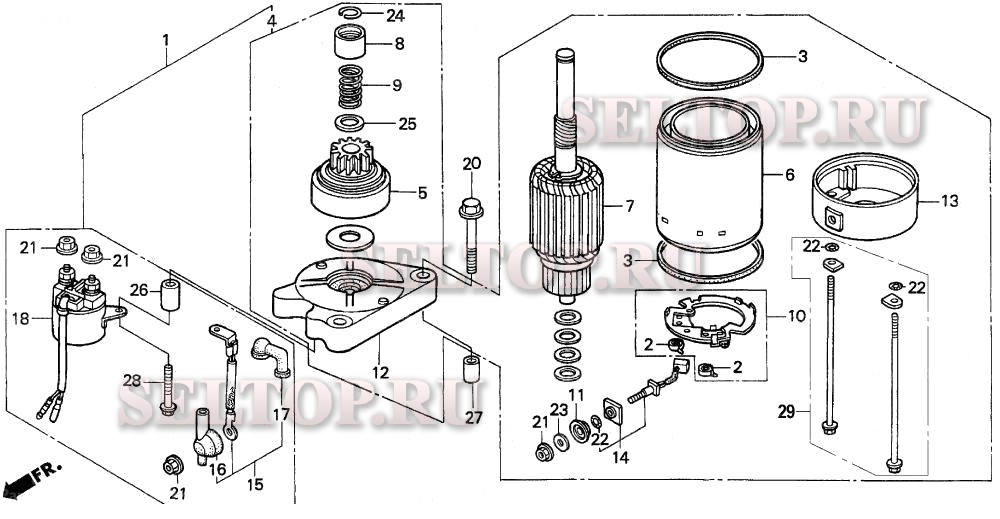 Стартер для Honda BF15AK SAS, взрыв-схема: