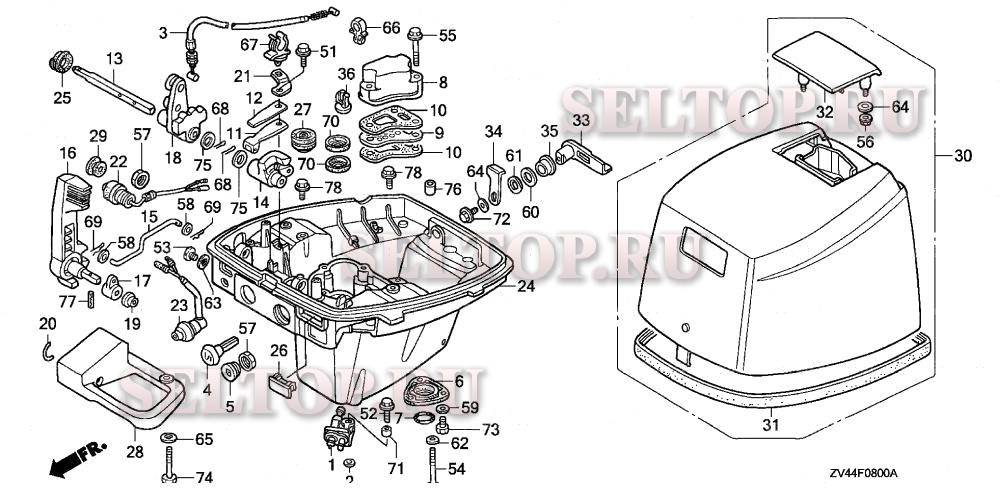 Крышка двигателя для Honda BF15AM LA, взрыв-схема: