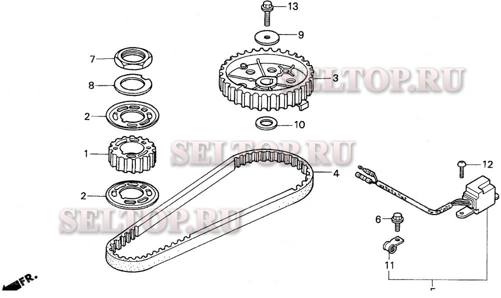 Зубчатый ремень привода для Honda BF15AM LA, взрыв-схема: