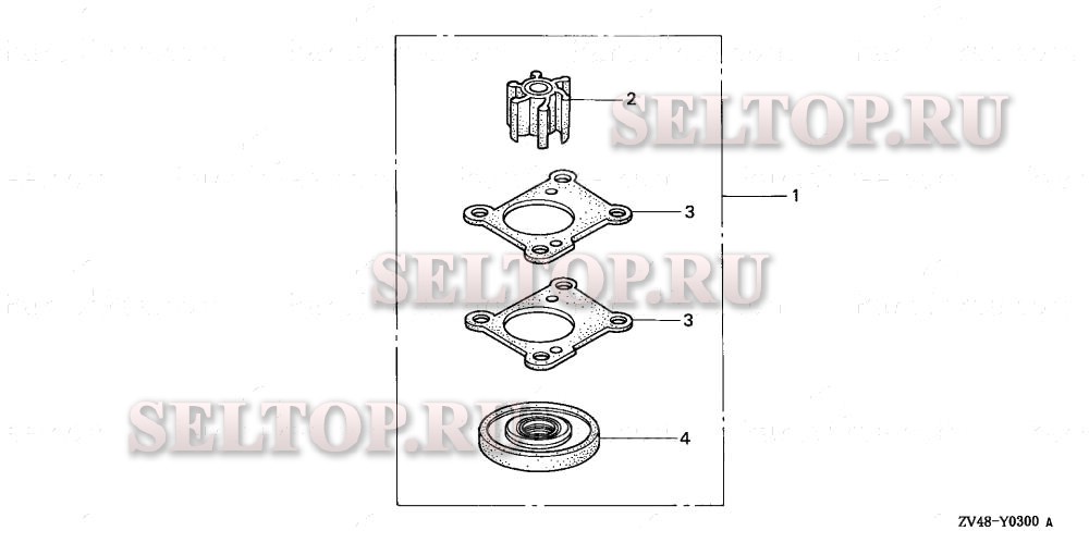 Крыльчатка насоса для Honda BF15AX LA, взрыв-схема: