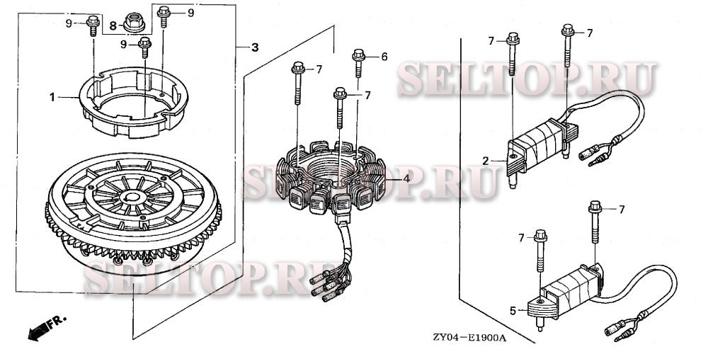 Маховик для Honda BF15D3 LRA, взрыв-схема: