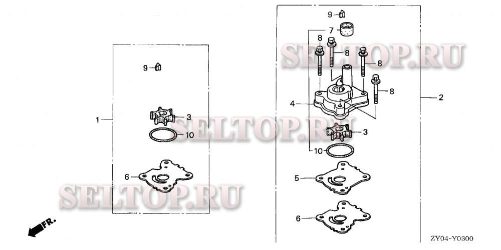 Крыльчатка насоса для Honda BF15D4 LRTA, взрыв-схема: