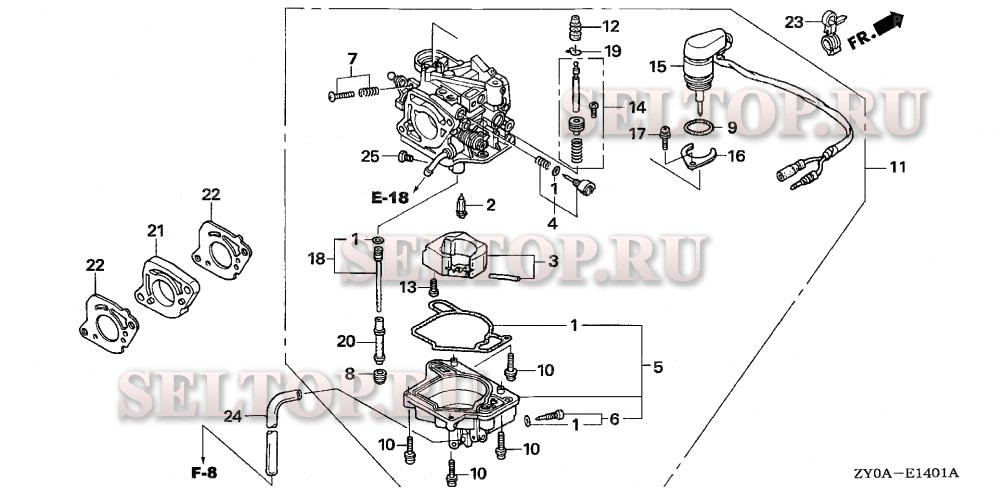 Карбюратор (auto) для Honda BF15D5 LHSA, взрыв-схема: