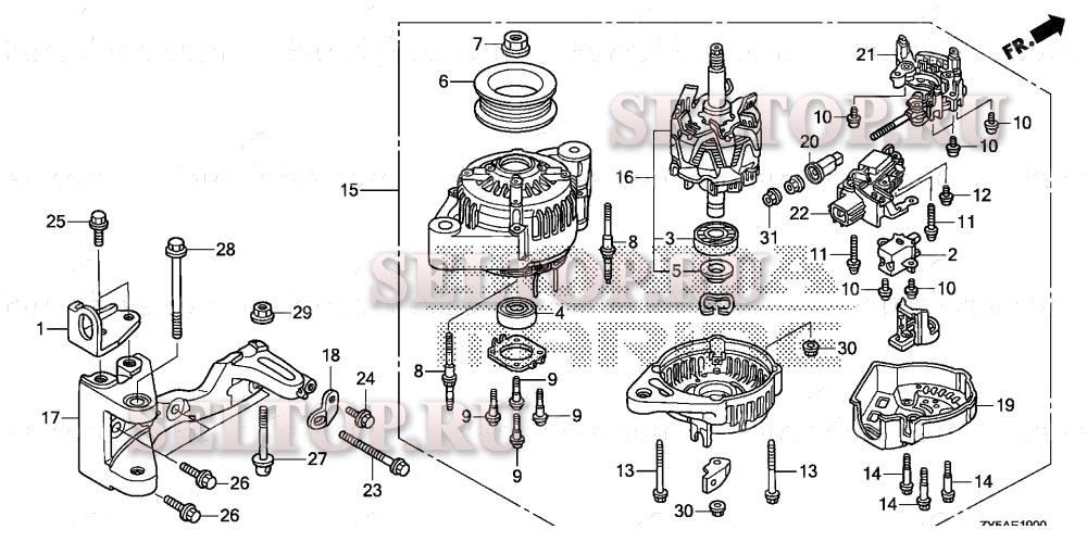 Генератор для Honda BF150AK2 XCA, взрыв-схема: