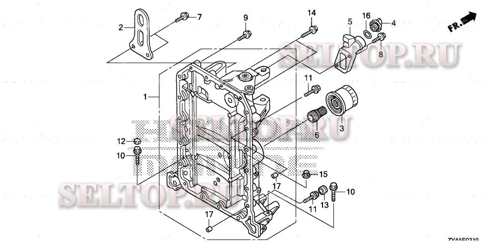 Картер для Honda BF175AK2 XA, взрыв-схема: