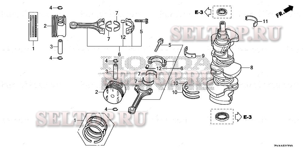 Коленвал, поршень для Honda BF175AK2 XA, взрыв-схема: