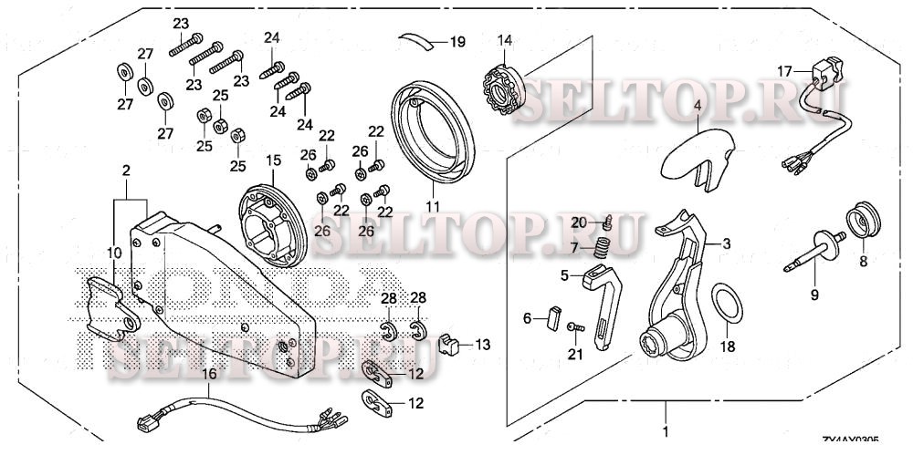 Дистанционное управление (заподлицо) (левая) для Honda BF175AK2 XCA