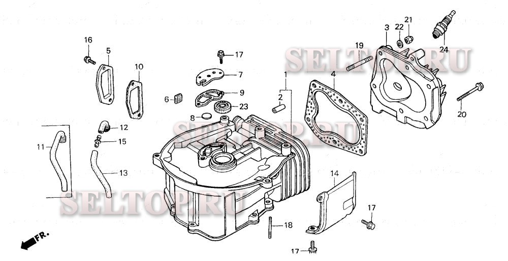 Блок цилиндров для Honda BF2AK SA, взрыв-схема: