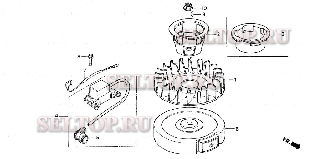 Катушка зажигания для Honda BF2AK SA, взрыв-схема:
