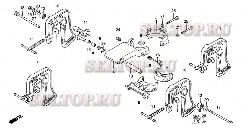 Корпус вертлюга для Honda BF2AK SA, взрыв-схема: