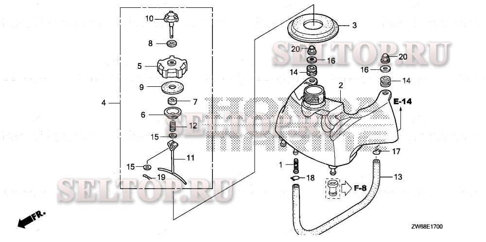 Топливный бак для Honda BF2DK0 LCHA, взрыв-схема: