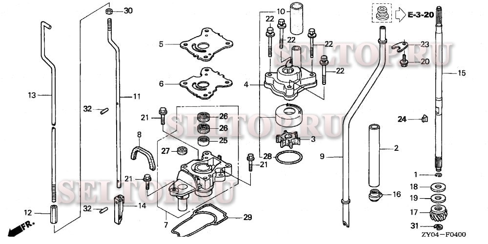 Водяной насос, вертикальный вал (1) для Honda BF20D3 LHTA