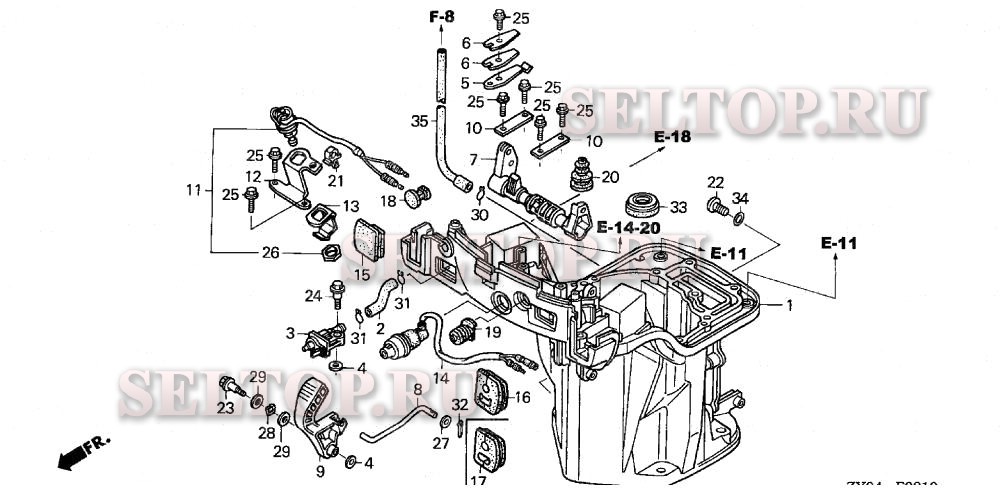 Корпус с датчиком уровня масла, ось вилки переключения (технические характеристики) для Honda BF20D4 SHTA