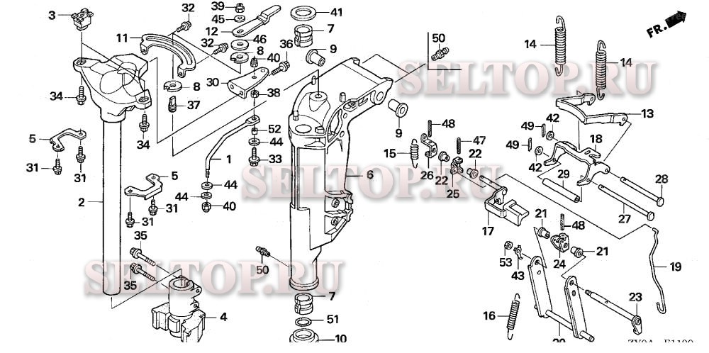 Корпус вертлюга (1) для Honda BF20D6 SRA, взрыв-схема: