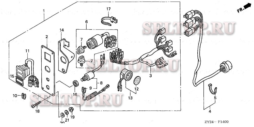 Панель управления для Honda BF200A3 XXA, взрыв-схема: