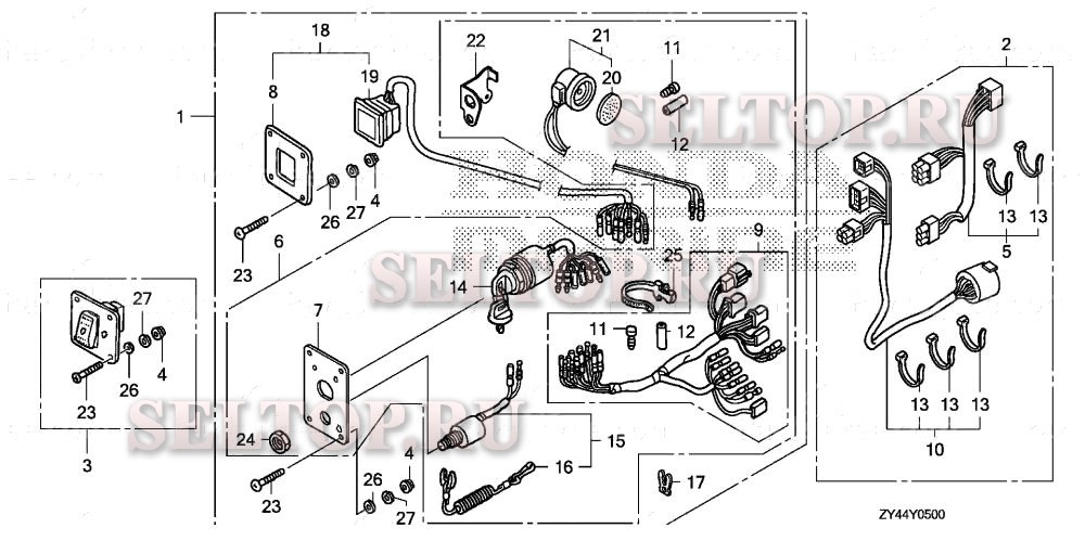 Панель распределительного щита (1) для Honda BF200AK1 XCA, взрыв-схема: