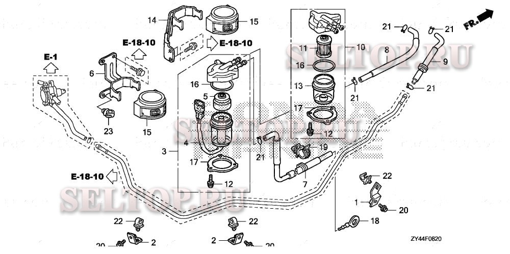 Влагоотделитель, топливный фильтр для Honda BF200AK1 XCA, взрыв-схема: