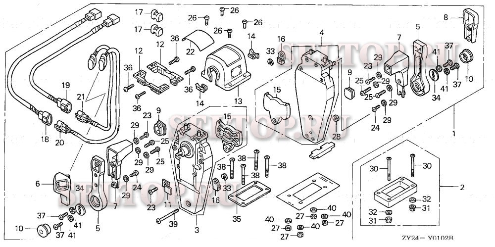 Дистанционное управление (верхняя опора двутипная) (правая) для Honda BF225A2 LA, взрыв-схема: