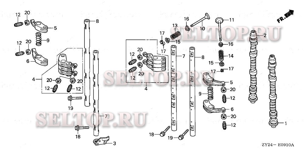 Распредвал, коромысло для Honda BF225A5 LA, взрыв-схема: