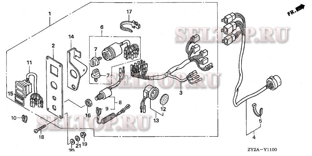 Панель управления для Honda BF225A6 XXA, взрыв-схема:
