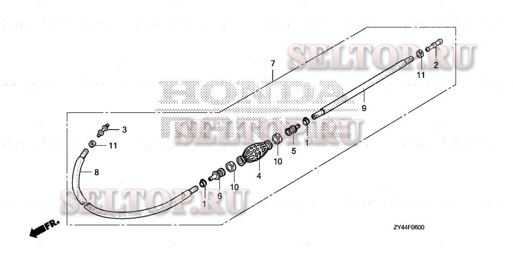 Топливная трубка для Honda BF225AK1 LA, взрыв-схема: