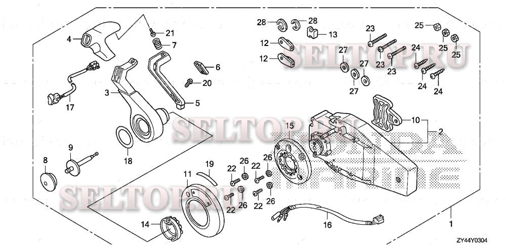 Дистанционное управление (заподлицо) (правая) для Honda BF225AK1 XA