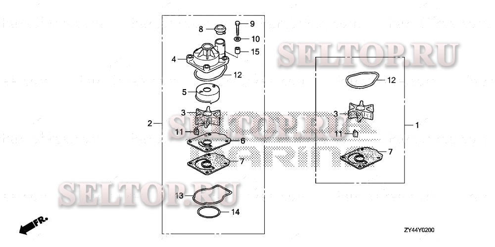 Крыльчатка насоса для Honda BF225AK1 XCA, взрыв-схема: